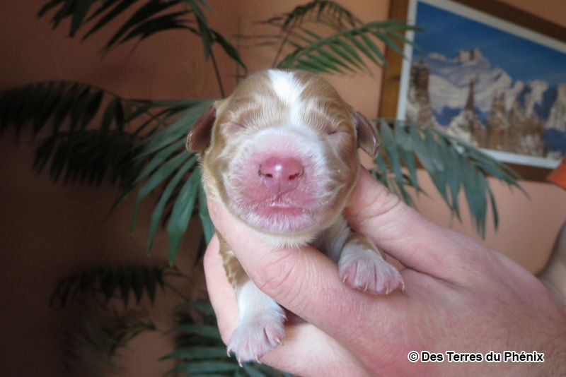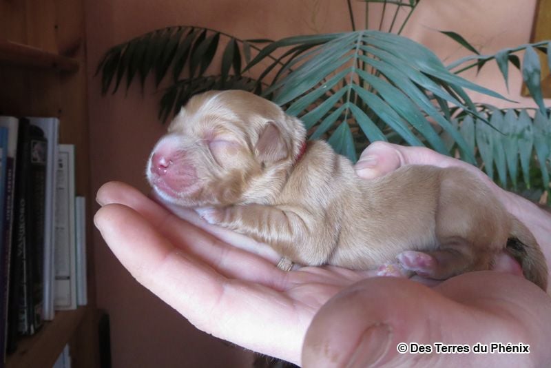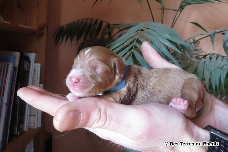 Collier rouge - Poids de naissance 424g - Koda part chez un couple à côté d'Annecy et pratiquera l'agility et/ou le sauvetage à l'eau.